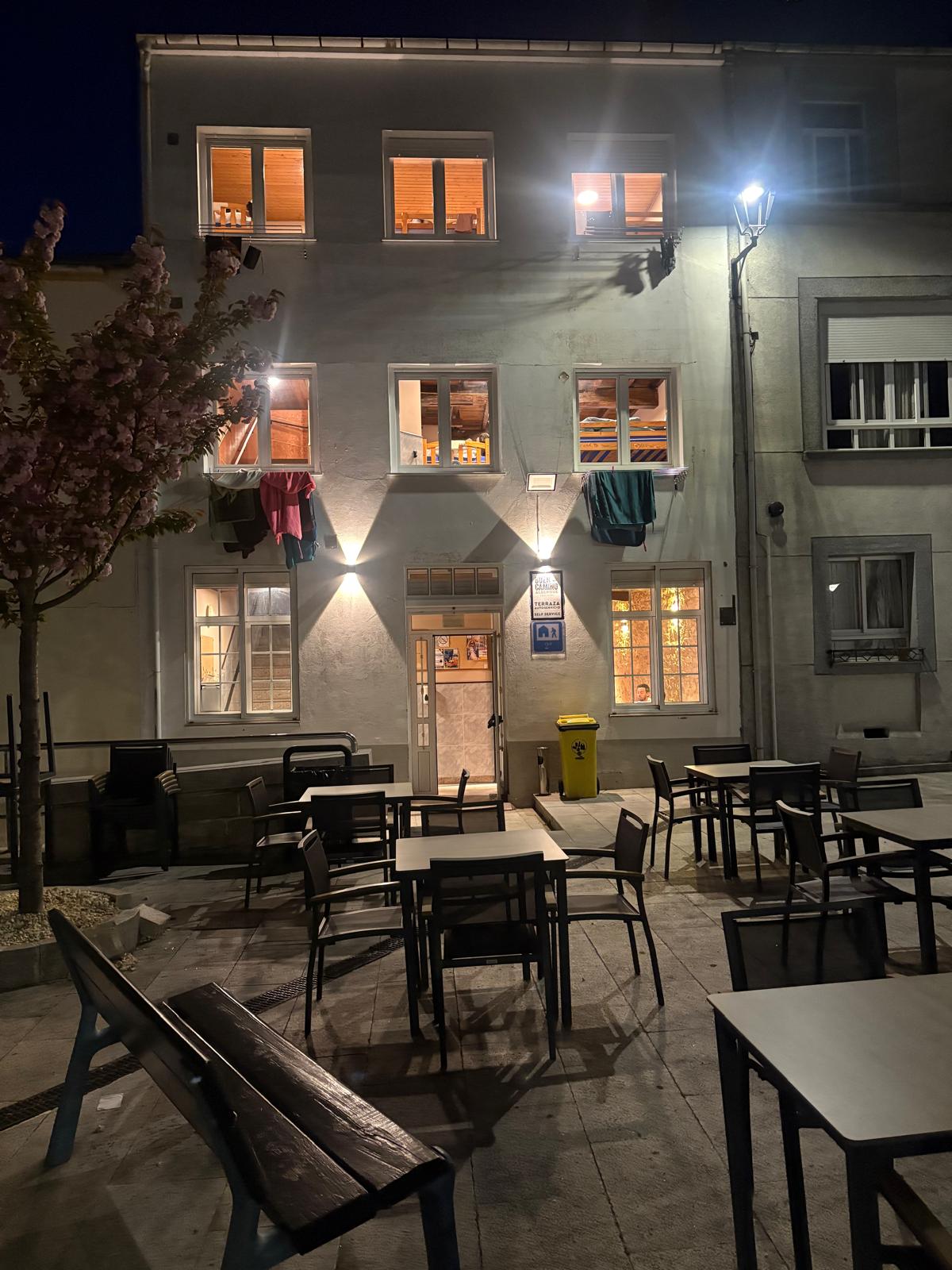 Situado en el centro de Palas de Rei, la entrada de nuestro albergue nos permite recibir a quién camina por el Camino Francés a su paso por el tramo peatonal de la Travesía do Peregrino. Disponemos de dos terrazas exteriores toldadas que permiten tener varios ambientes a la vez, la parte baja es el bar del Albergue y los platos que ofrecemos son de producto local y de proximidad. Nuestras habitaciones son de poca capacidad y con camas de litera de madera.