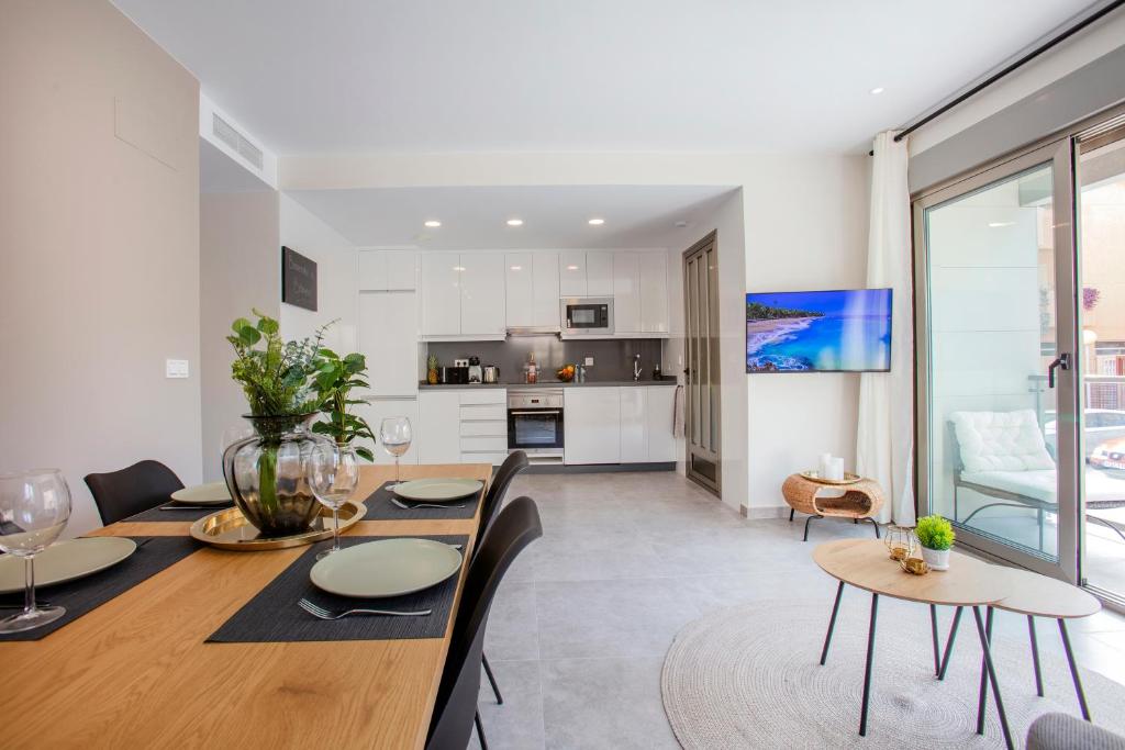 Apartamento en Bolnuevo está en Bolnuevo, a pocos pasos de Playa de Bolnuevo, en una zona donde se puede practicar ciclismo. Este alojamiento frente a la playa ofrece parking privado gratis, wifi gratis y acceso a un balcón. Este apartamento con aire acondicionado consta de 2 dormitorios, una sala de estar, una cocina totalmente equipada con nevera y cafetera, y 2 baños con ducha y secador de pelo. Hay toallas y ropa de cama en el apartamento. El aeropuerto (Aeropuerto internacional Región de Murcia) está a 43 km.