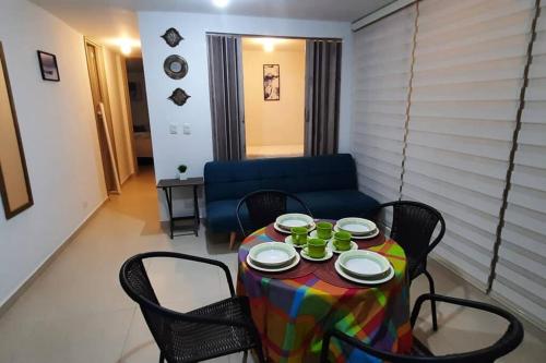 Apartamento en Ricaurte se encuentra en Ricaurte, a 17 km de Piscilago, y ofrece alojamiento con aire acondicionado y parking privado ofrece en el propio alojamiento. Este apartamento dispone de centro de fitness. El apartamento cuenta con balcón y vistas a la piscina, y dispone de 3 dormitorios, una sala de estar, TV de pantalla plana, una cocina equipada con nevera y 2 baños con ducha. Hay toallas y ropa de cama en el apartamento. En el apartamento, la clientela puede usar la zona de juegos infantil. El aeropuerto más cercano (Aeropuerto de Ibagué) está a 64 km.
