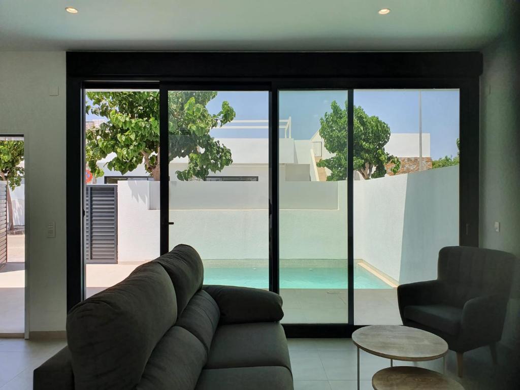 Azula HolidayHome se encuentra en Pilar de la Horadada y ofrece alojamiento con piscina privada, patio y vistas a la piscina. Dispone de piscina al aire libre, terraza, vistas a la montaña y wifi gratis en todo el alojamiento. Esta casa o chalet con aire acondicionado consta de 3 dormitorios, una sala de estar, una cocina totalmente equipada con nevera y cafetera, y 2 baños con ducha y secador de pelo. Hay toallas y ropa de cama en la casa o chalet. Campo de golf Las Colinas está a 21 km del alojamiento, y La Manga Club está a 48 km. El aeropuerto (Aeropuerto internacional Región de Murcia) está a 46 km.
