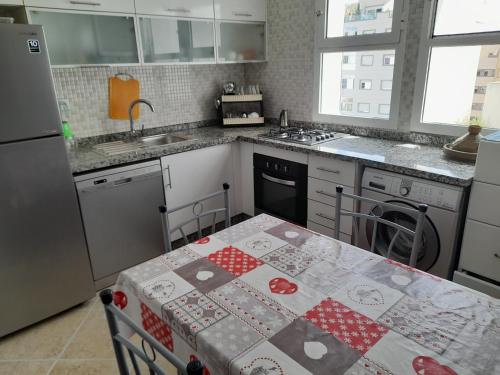 Bab sebta ofrece zona de playa privada y vistas al mar. Se encuentra en Fnideq, a 2,4 km de Playa El Tarajal y a 2,7 km de Playa de Fnideq. Este apartamento dispone de piscina privada, jardín y parking privado gratis. Este apartamento cuenta con 1 dormitorio, cocina con nevera y lavavajillas, TV de pantalla plana, zona de estar y 2 baños con bidet. Se puede disfrutar de la piscina cubierta en el apartamento.