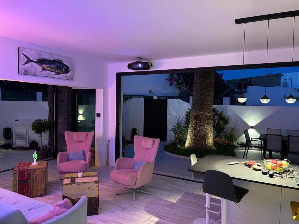 Beachside Villa - Casa Aboleon está en Corralejo, a pocos pasos de Playa de Corralejo Viejo y a 31 km de Ecomuseo de Alcogida, y ofrece alojamiento con wifi gratis, aire acondicionado, piscina al aire libre y jardín. El alojamiento ofrece vistas al mar y a la montaña y está a 31 km de Casa Museo de Unamuno (Fuerteventura). La villa dispone de 3 dormitorios, 3 baños, ropa de cama, toallas, TV de pantalla plana con canales vía satélite, zona de comedor, cocina totalmente equipada y terraza con vistas a la ciudad. La villa dispone de barbacoa. Fuerteventura Golf Club está a 47 km del alojamiento. El aeropuerto (Aeropuerto de Fuerteventura) está a 38 km.