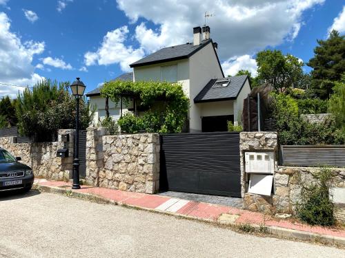 BECERRIL DE LA SIERRA se encuentra en Becerril de la Sierra, en la región de Comunidad de Madrid, y tiene balcón y vistas al jardín. Esta casa o chalet dispone de jardín, zona de barbacoa, wifi gratis y parking privado gratis. La casa o chalet tiene 5 dormitorios y 3 baños con bidet, bañera y secador de pelo. El alojamiento ofrece cocina. Hay terraza en este alojamiento y en la zona se puede practicar senderismo. Plaza Mayor está a 44 km del alojamiento, y Templo de Debod está a 47 km. El aeropuerto más cercano (Aeropuerto Adolfo Suárez Madrid - Barajas) está a 52 km del alojamiento.