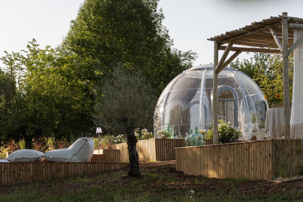 Bulle de Leygonie se encuentra en Saint-Aulaire, a 38 km de Lascaux, y ofrece alojamiento con aire acondicionado y parking privado ofrece en el propio alojamiento. Este tented camp está a 18 km de Brive Commercial Court y a 18 km de Brive Exhibition Centre. Hay toallas y ropa de cama en el tented camp. El tented camp ofrece desayuno continental o sin gluten. En Bulle de Leygonie, la clientela puede disfrutar de bañera de hidromasaje. El alojamiento dispone de terraza, además de jardín. Brive Town Hall está a 19 km del alojamiento, y Brive Media Centre está a 19 km. El aeropuerto (Aeropuerto Brive-La Roche) está a 31 km.
