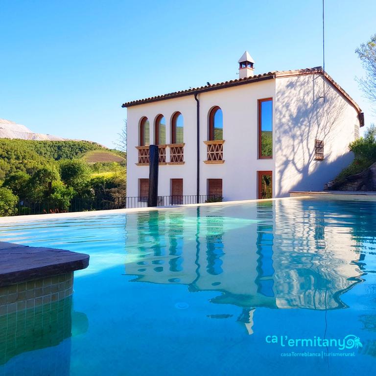 Ca l' Ermitanyo- Casa Torre Blanca está en Súria y ofrece vistas a la montaña, piscina al aire libre, jardín, salón de uso común y terraza. En la casa rural, tanto el wifi como el parking privado son gratis. Todas las unidades disponen de aire acondicionado y TV de pantalla plana por cable. Algunos alojamientos incluyen un patio con vistas a la piscina, cocina totalmente equipada y baño compartido con ducha. En Ca l' Ermitanyo- Casa Torre Blanca, la clientela puede disfrutar de bañera de hidromasaje. En el alojamiento, la clientela puede jugar al ping-pong en el propio alojamiento o practicar esquí en los alrededores. Teatro Kursaal está a 17 km del alojamiento, y Parque Cultural de la Montaña de Sal de Cardona está a 20 km. El aeropuerto (Aeropuerto de Barcelona - El Prat) está a 85 km.