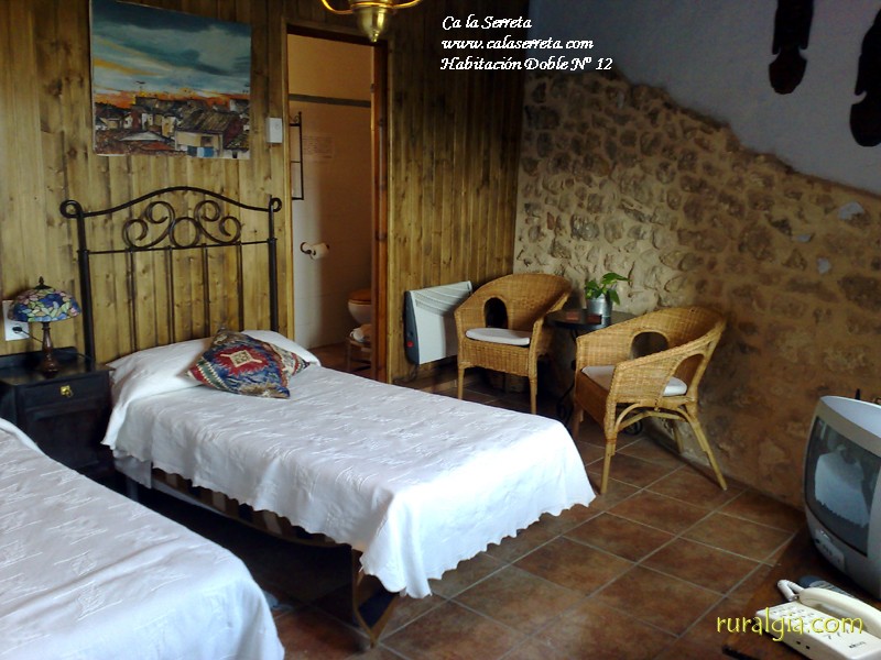 Casa de Turismo rural familiar, alquiler de habitaciones con baño, tv, telefono, ventilador de techo, estufa de leña acristalada en todas las habitaciones, desayuno incluido en el precio de la habitacion, comida y cena opcional, cocina casera con productos naturales y ecologicos de la zona, se admiten animales. Aqui encontraras toda la informacion sobre actividades de ocio y tiempo libre como: 4x4, buggy, btt, quad, senderismo, piraguas, canoas, kayak, barranquismo, via verde del matarraña y terra alta, ruta de los pueblos medievales, ruta de las carceles, dinopolis, zonas de baño naturales y piscina, avistamiento de fauna salvaje guido, barcos y fuera borda por el ebro, escalada, museo picasso, museos, etc. La casa esta ubicada muy cerca de: Valderrobres, calaceite, lledo, arens de lledo, arnes, horta de Sant Joan, cretas, beceite, peñarroya de tastavins, fuentespalda, la fresneda, monroyo, rocas de benet, el parrizal, la pesquera, pantano de pena, puertos de Tortosa Beceite, els ports, rio matarraña, ulldemo, algars, estrets,