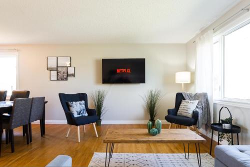 Spacious 6Bed 2bath Bungalow near WEM, w free parking & WiFi! | Cabaña | Edmonton (CANADÁ) | El Spacious 6Bed 2bath Bungalow near WEM, w free parking & WiFi! se encuentra en Edmonton, a solo 2,1 km del centro comercial West Edmonton. Ofrece alojamiento con jardín, restaurante y WiFi gratuita. Cuenta con patio y parque infantil. La casa tiene terraza, vistas al jardín, 6 dormitorios, sala de estar, TV de pantalla plana, cocina equipada con nevera y horno y 2 baños con ducha. Se proporcionan toallas y ropa de cama. En la zona se puede practicar senderismo, esquí y pesca. El establecimiento alberga un | 161€ | A 6.26 kms de Edmonton (Alberta) |