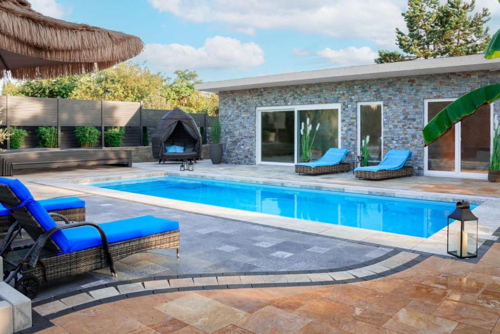 Casa con Piscina, que cuenta con piscina de temporada al aire libre, ofrece alojamiento en Ebenweiler con wifi gratis y vistas al jardín. Esta villa tiene piscina privada, jardín y parking privado gratis. La villa cuenta con terraza y vistas a la piscina, y dispone de 1 dormitorio, una sala de estar, TV de pantalla plana, una cocina equipada con nevera y lavavajillas, y 1 baño con ducha. Hay toallas y ropa de cama en la villa. La villa ofrece zona de juegos infantil. Recinto ferial Messe Friedrichshafen está a 30 km del alojamiento. El aeropuerto (Aeropuerto de Friedrichshafen) está a 32 km.