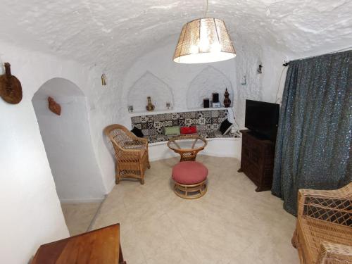 Casa Cueva Morillas está en Guadix. Este alojamiento ofrece parking privado gratis, wifi gratis y acceso a un patio. La casa o chalet cuenta con terraza y vistas a la montaña, y tiene 3 dormitorios, una sala de estar, TV de pantalla plana, una cocina equipada con nevera y microondas, y 1 baño con bañera o ducha. Hay toallas y ropa de cama en la casa o chalet. Después de un día de senderismo o esquí, la clientela puede relajarse en el jardín o el salón de uso común. El aeropuerto (Aeropuerto Federico García Lorca de Granada-Jaén) está a 68 km.