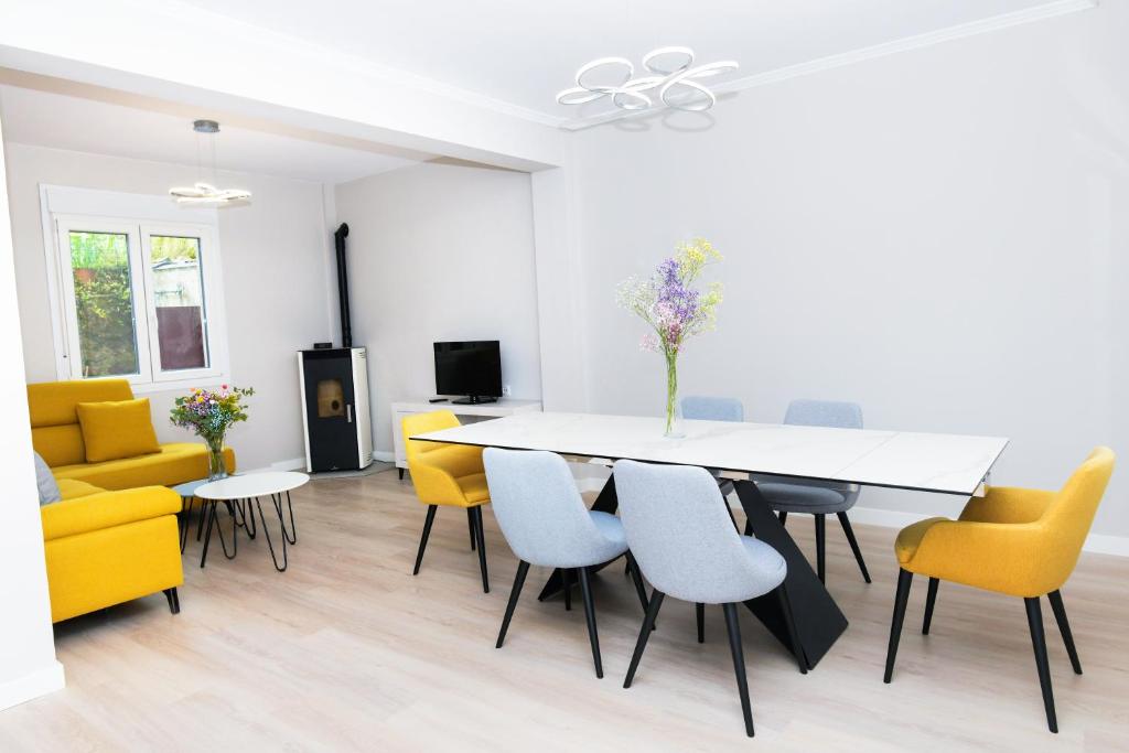 Casa Papín está en Finisterre, a 3 min a pie de Playa Da Ribeira, y dispone de alojamiento con terraza, wifi gratis y recepción 24 horas. El alojamiento ofrece vistas al jardín y está a 25 km de Cascada de Ézaro. Esta casa o chalet consta de 5 dormitorios, una sala de estar, una cocina totalmente equipada con horno y cafetera, y 3 baños con bidet y secador de pelo. Hay toallas y ropa de cama en la casa o chalet. El aeropuerto (Aeropuerto de Santiago de Compostela) está a 95 km.