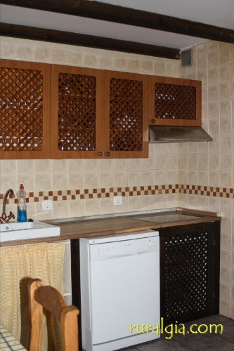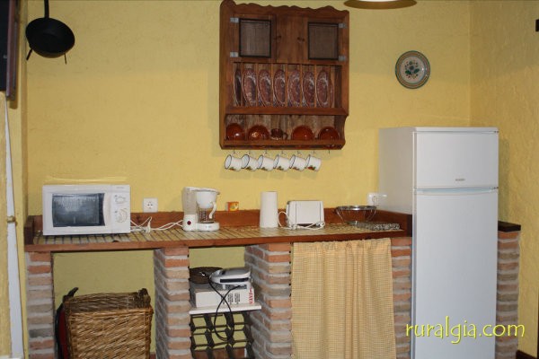 La cocina está equipada con frigorífico, microondas, vitrocerámica y lavadora.