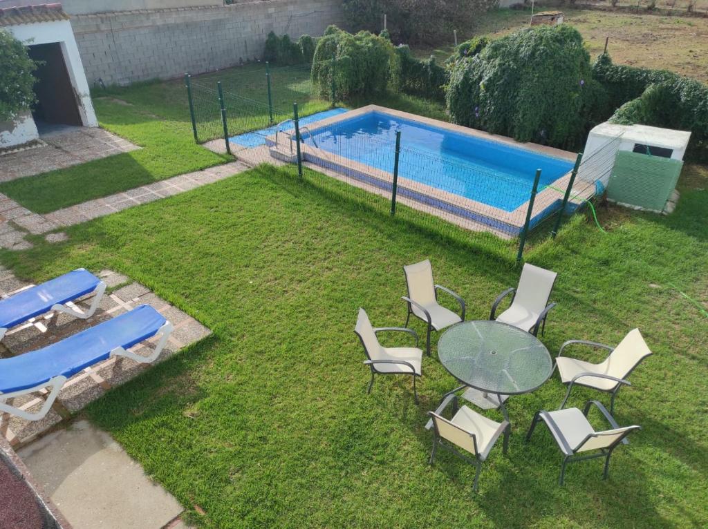 Casa Rural con Piscina Verdugo, que cuenta con vistas al jardín, ofrece alojamiento con piscina de temporada al aire libre, zona de playa privada y terraza a unos 43 km de Real Novo Sancti Petri Golf Club. Esta casa o chalet dispone de piscina privada, jardín, zona de barbacoa, wifi gratis y parking privado gratis. Esta casa o chalet con aire acondicionado consta de 3 dormitorios, una sala de estar, una cocina totalmente equipada con nevera y cafetera, y 1 baño con ducha y artículos de aseo gratuitos. Hay toallas y ropa de cama en la casa o chalet. La casa o chalet ofrece servicio de alquiler de coches. Parque Genovés está a 23 km del alojamiento, y Costa Ballena Ocean Golf Club está a 24 km. El aeropuerto (Aeropuerto de Jerez) está a 24 km, y el alojamiento ofrece servicio de traslado de pago para ir o volver del aeropuerto.