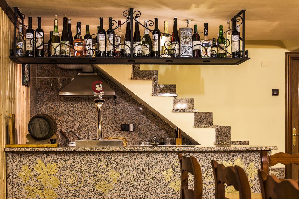 mesa pequeña y otra grande, también posee una pequeña barra de bar.