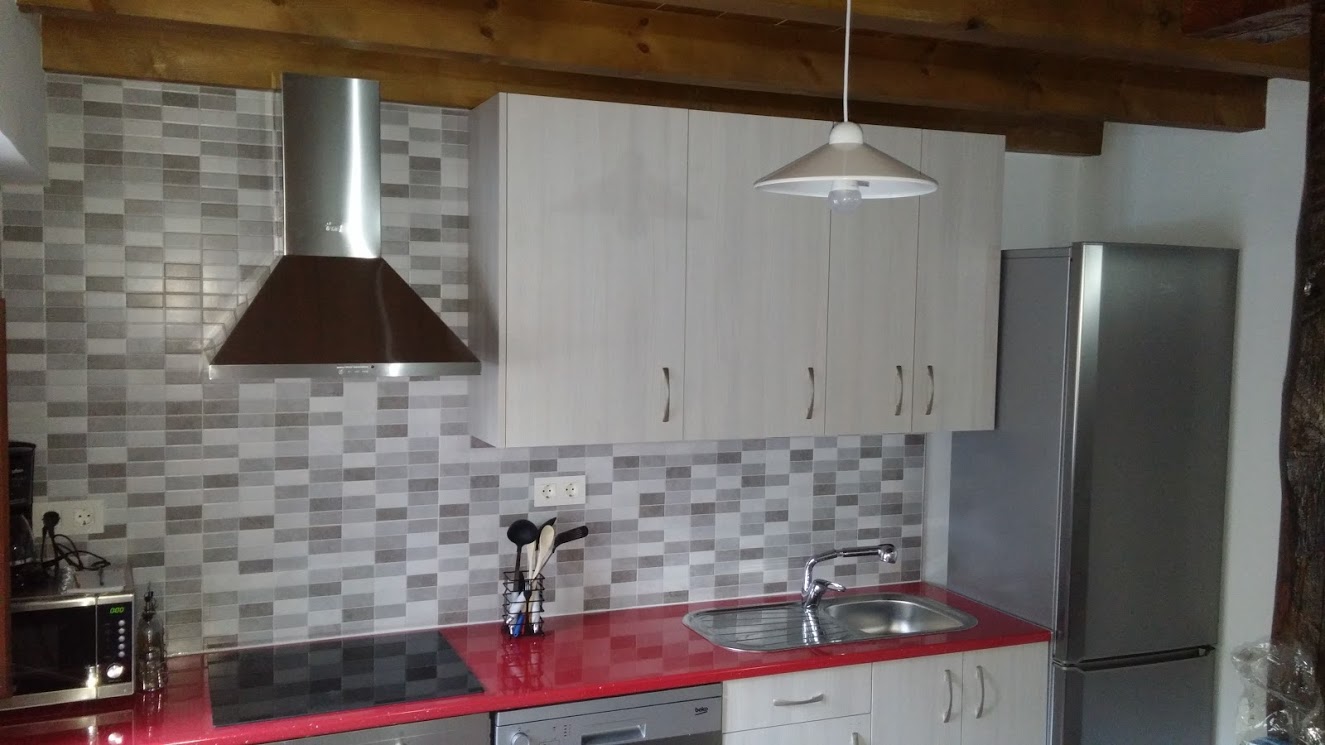 Casa del siglo XIX, completamente restaurada. Se han respetado la estructura de la casa como las paredes antiguas que tenía la casa de piedra. La casa tiene tres plantas, en la primera está la cocina que es abierta, con todo el menaje necesario para 12 personas o 14, con vitro, frigo, lavadora, lavavajillas, tostador, plancha, etc, también hay un baño completo, el salón que tiene una mesa amplia para 12, sofás, TV, y chimenea y al final de la casa hay un patio con mesas y sillas y una barbacoa. En las plantas superiores están las habitaciones, hay tres por planta, cada una de ellas tiene dos camas de 1,05cm, una mesita, silla y armario, las camas están completas(sábanas, mantas y colcha), son habiataciones amplias donde se pueden poner una cama supletoria. En cada planta hay un baño completo
