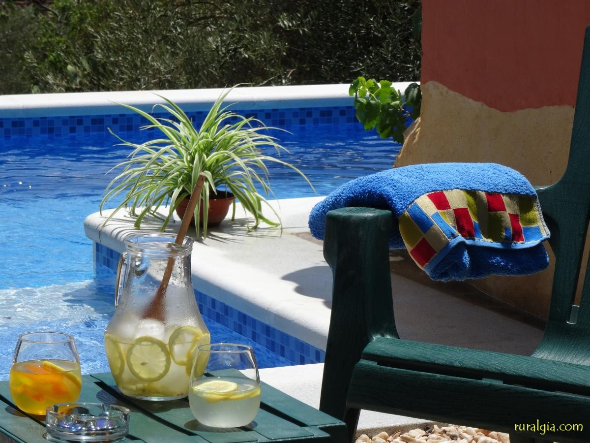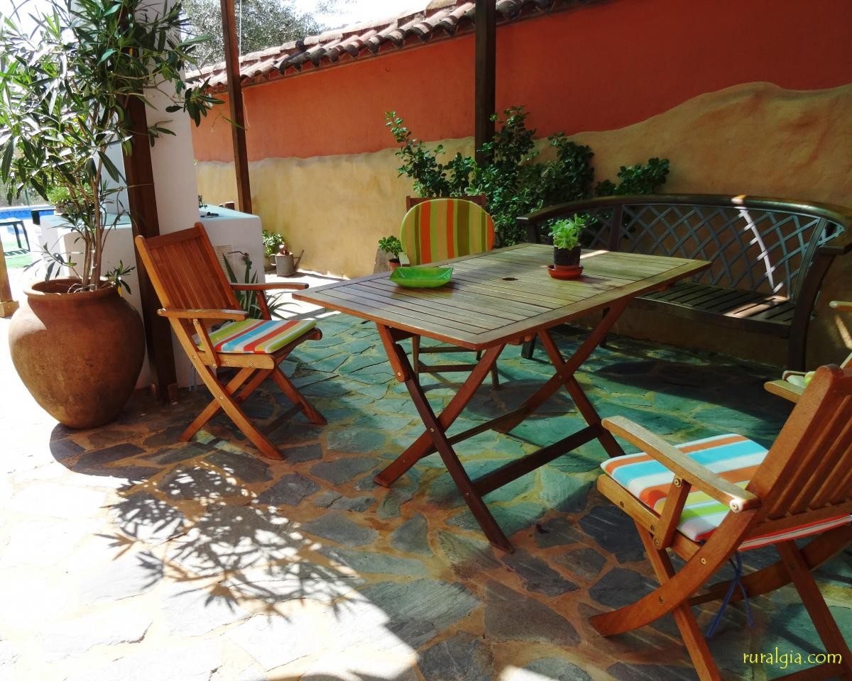 Casa Rural, 4 personas, dos dormitorios dobles, patio, jardín, barbacoa, terraza, piscina, ducha exterior. Acceso para personas con movilidad reducida.