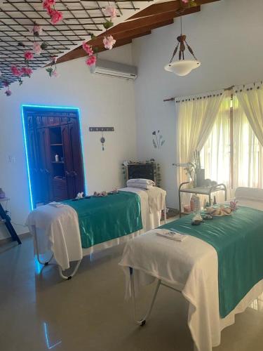 El Chalet Villas de Carolina se encuentra en Los Chancos y ofrece jardín, salón compartido, bar, WiFi gratuita y vistas a la piscina. El establecimiento cuenta con piscina privada y aparcamiento privado gratuito. La casa cuenta con aire acondicionado, 5 dormitorios, sala de estar, cocina totalmente equipada con nevera y cafetera y 5 baños con bañera de hidromasaje. Hay TV de pantalla plana. La casa cuenta con parque infantil. El Chalet Villas de Carolina está a 2,3 km de El Libano y a 2,9 km de Galpón. El aeropuerto internacional Alfonso Bonilla Aragón es el más cercano y queda a 65 km.