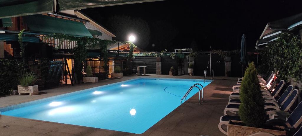 Escapa de la ciudad a menos de 1 hora de Madrid, un Paraíso a tu alcance. Para todas las necesidades o caprichos. En Pareja: Disfruta de nuestras suites con Jacuzzi doble y cromoterapia. Si quieres acompáñalo con alguna de nuestras ofertas “Sorprende a tu pareja”. En Familia o con amigos: Ideal para ir con niños. Cabañas amplias y totalmente equipadas en 7 hectáreas de pinar centenario. Parque infantil, minigolf, padel, granja y huerto ecológico. . Zona cubierta de barbacoas con salones de us15€-80€A 81.74 kms de Madrid