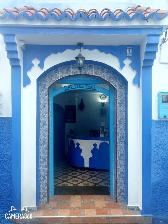Dar Bleu Pearl se encuentra en Chefchaouen, a 15 min a pie de Khandak Semmar, y ofrece servicio de conserjería, habitaciones hipoalergénicas, salón de uso común, wifi gratis en todo el alojamiento y terraza. El alojamiento está a 4 min a pie de Mohammed 5 Square, a 500 metros de Kasba y a 3 min a pie de Outa El Hammam Square. El alojamiento dispone de cocina compartida y cambio de moneda. En el hostal o pensión, cada habitación cuenta con escritorio. El baño privado está equipado con ducha, artículos de aseo gratuitos y secador de pelo. En Dar Bleu Pearl, cada habitación tiene ropa de cama y toallas. El aeropuerto (Aeropuerto Sania Ramel) está a 69 km.
