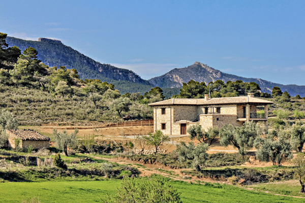 La finca disfruta de un paisaje forestal (a los pies de los Puertos de Beceite/Tortosa, a 7 km de Beceite) y agrícola que nos hace reencontrar con la naturaleza y nos hace pensar que estamos lejos de la ciudad a tan solo 1 kilómetro del casco urbano de Valderrobres (capital de esta comarca conocida como “la Toscana Española”).
