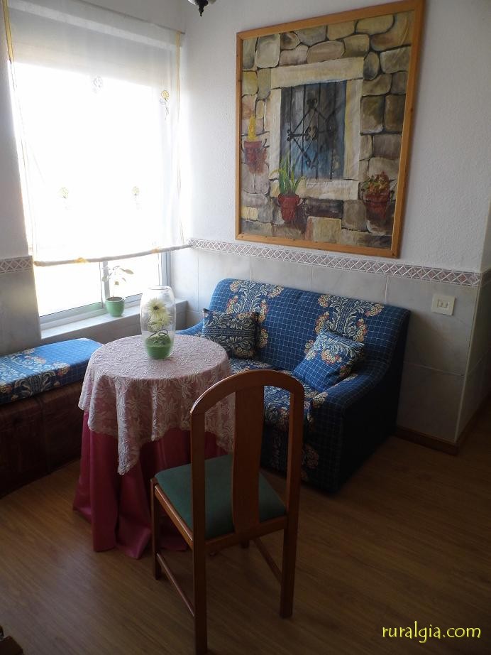 Dispone de 85 metros cuadrados habitables, divididos en tres habitaciones (una con cama de matrimonio y otras dos dobles). Aparte, una sala de estar con sofá cama y televisor, otro amplio salón comedor, una cocina (con horno, lavavajillas, nevera, lavadora y todo tipo de utensilios para cocinar), baño (con bañera, toallas limpias y utensilios de higiene), y una entrada recibidor. Tiene calefacción por acumuladores y otra de leña. Las habitaciones tienen contraventanas para mantener el calor en invierno.