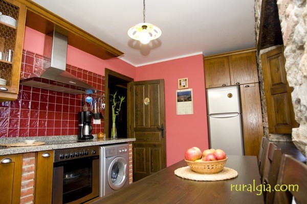 Es una casa integra desde 4 hasta 8 plazas , cuna, 4 habitaciones, 4 baños, cocina equipada ( con horno, vitrocerámica, lavavajillas, nevera, mesa para 8 personas,menaje completo y todo tipo de enseres). Dispone también de un salón con chimenea para leña, sofás, television,dvd,calefacción,wifi y una pequeña biblioteca con stand de información turística de la zona y juegos de mesa.