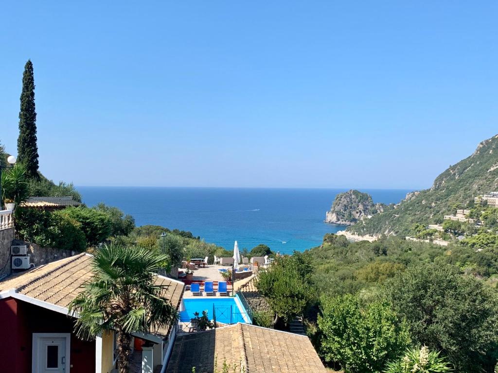 Ermones Amber Villa, que tiene piscina de temporada al aire libre, jardín y terraza, dispone de alojamiento en Vátos con wifi gratis y vistas al mar. Este alojamiento ofrece parking privado gratis y acceso a un patio. Esta villa con aire acondicionado consta de 2 dormitorios, una sala de estar, una cocina totalmente equipada con nevera y cafetera, y 1 baño con bañera y artículos de aseo gratuitos. Hay toallas y ropa de cama en la villa. La villa ofrece servicio de alquiler de coches, y en los alrededores se puede practicar senderismo. Playa de Ermones está a 16 min a pie del alojamiento, y Iglesia de Panagia Vlahernon está a 15 km. El aeropuerto (Aeropuerto internacional de Corfú) está a 14 km.