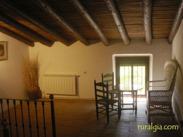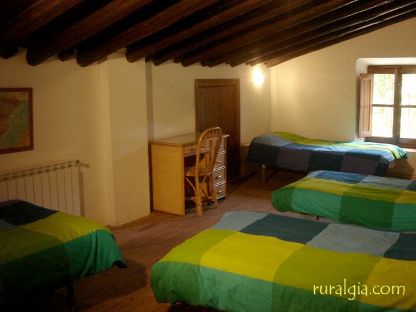 batidora, menaje, etc. Amplio salón con comedor, chimenea, TV, TV, equiipo de música. Baño completo en planta baja y baño con ducha en la planta superior. 5 habitaciones con camas de matrimonio y una habitación con 4 camas individuales de 0,90m, todas ellas con calefacción central. Terraza