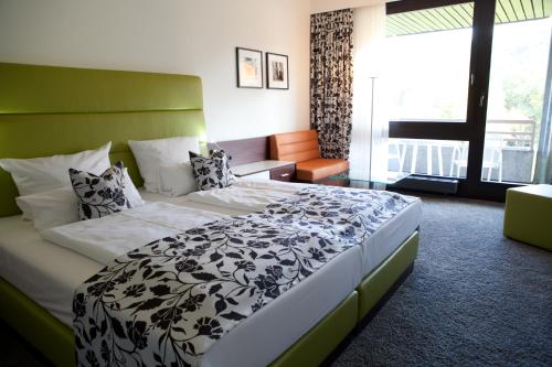 This elegant 4-star hotel in Bad Orb is connected to the Toskana Therme Spa by a hallway, which guests can cross in their bathrobe. Hotel an der Therme lies in green parkland in the scenic Spessart Nature Park. Guests enjoy complimentary breakfast, spa use and admission to the thermal baths. Guests can dine in Il Ristorante at the thermal baths, or else at the Kurpark restaurant in the hotel. The hotel also has a foyer bar with wine shop and terrace. Guests booking a rate with breakfast on this website enjoy complimentary admission to the thermal baths and unrestricted use of the Toskana Therme is included during the booked travel period within the opening hours (on the day of arrival from 3 p.m., not on the day of departure). Please note that breakfast and spa use are included.