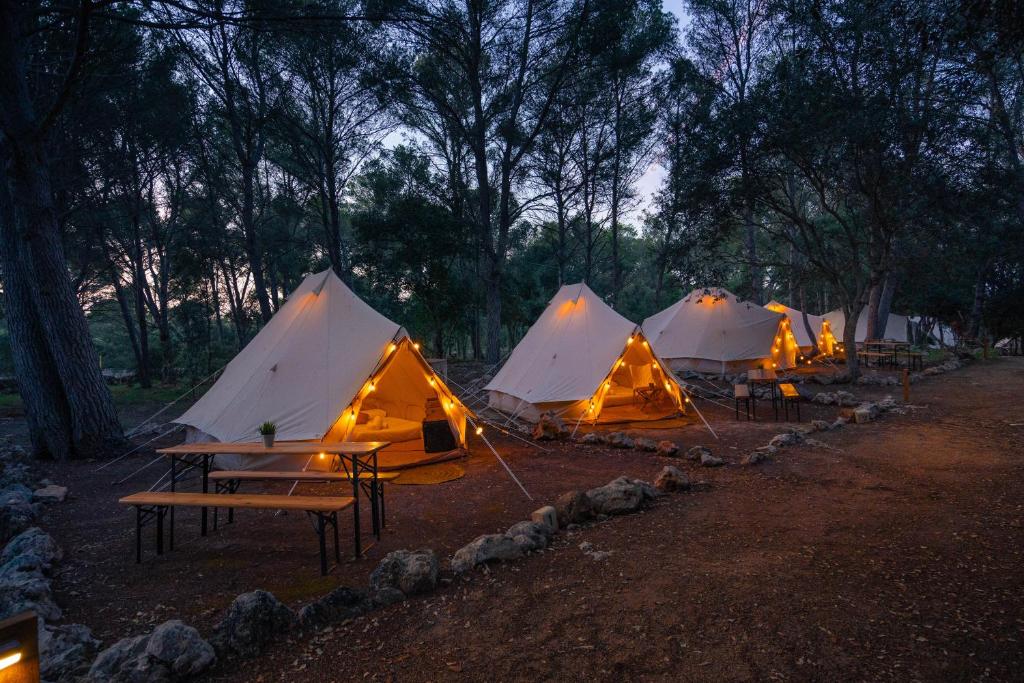 Kampaoh Menorca dispone de piscina de temporada al aire libre y bar, y está en Cala Galdana, a 34 km de Puerto de Mahón y a 16 km de Monte Toro. Club de Golf Son Parc está a 25 km del alojamiento, y Es Grau está a 39 km. El aeropuerto (Aeropuerto de Menorca) está a 33 km.