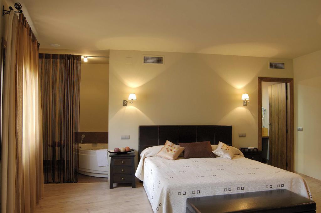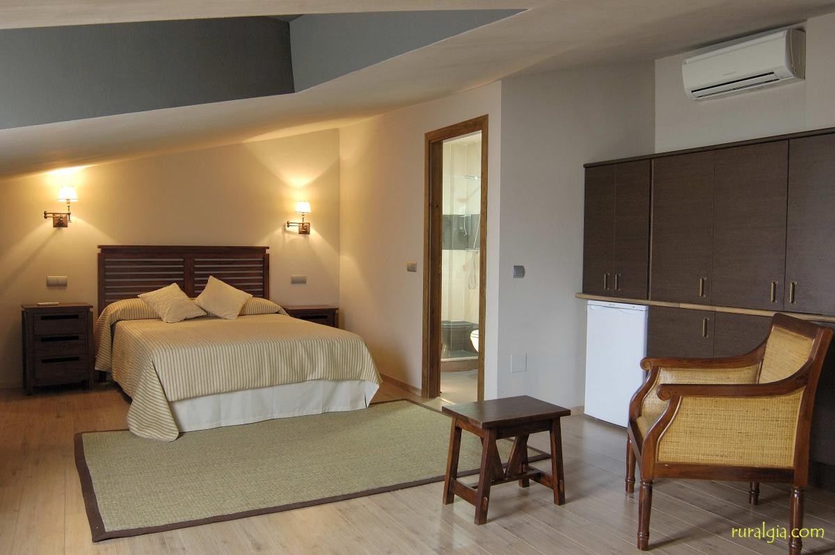 La casa rural La Botica consta de 5 habitaciones dobles y 1 apartamento. Dos habitaciones con 2 camas de 90, otras tres con 1 cama de 1.50 y la suite de 1.80. También disponemos de camas supletorias para tres de ellas y cuna. Todas ellas con cuarto de baño propio, aire acondicionado, calefacción, televisión, secador de pelo. La suite tiene bañera de hidromasaje fuera del baño y ducha en el baño.
