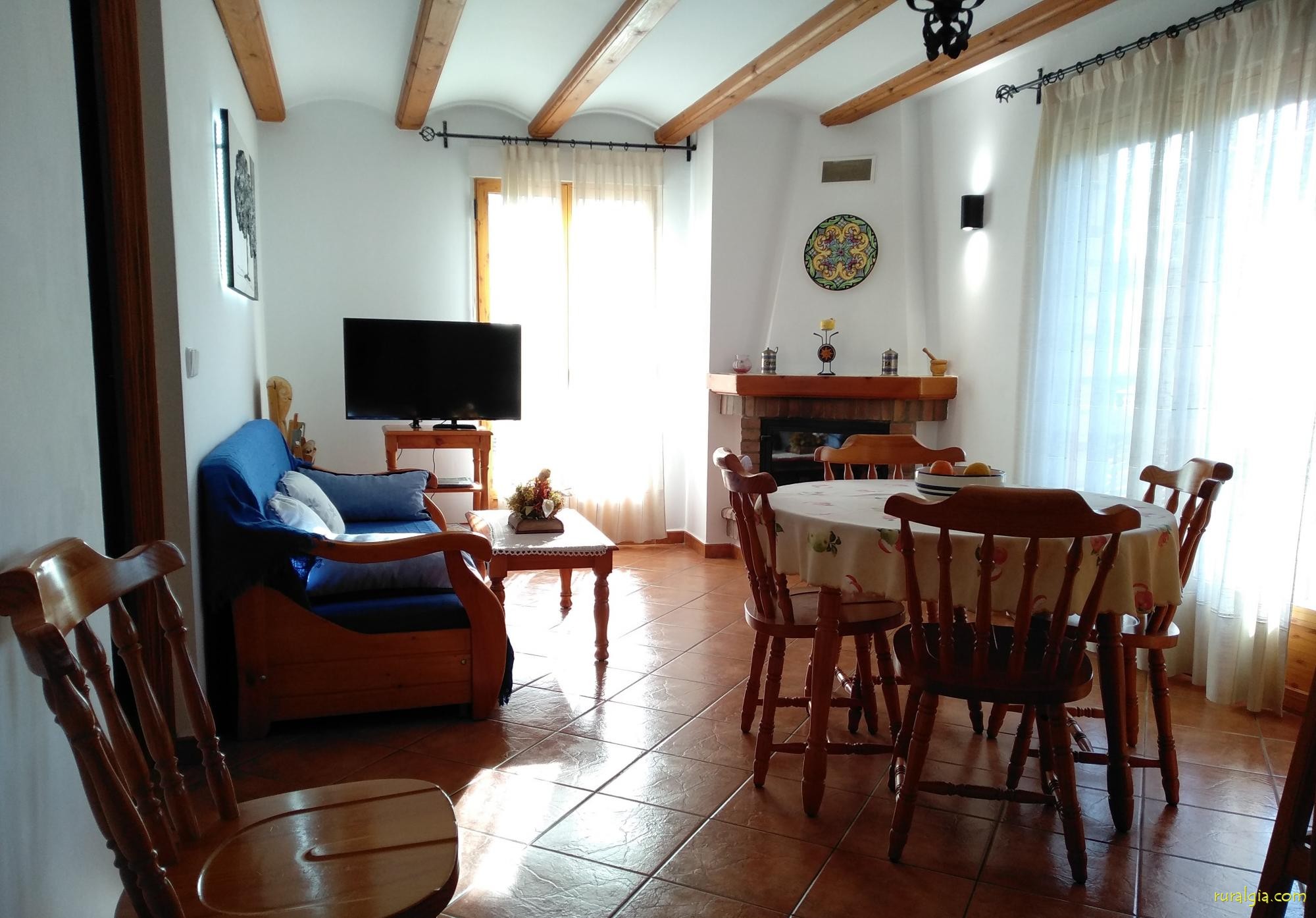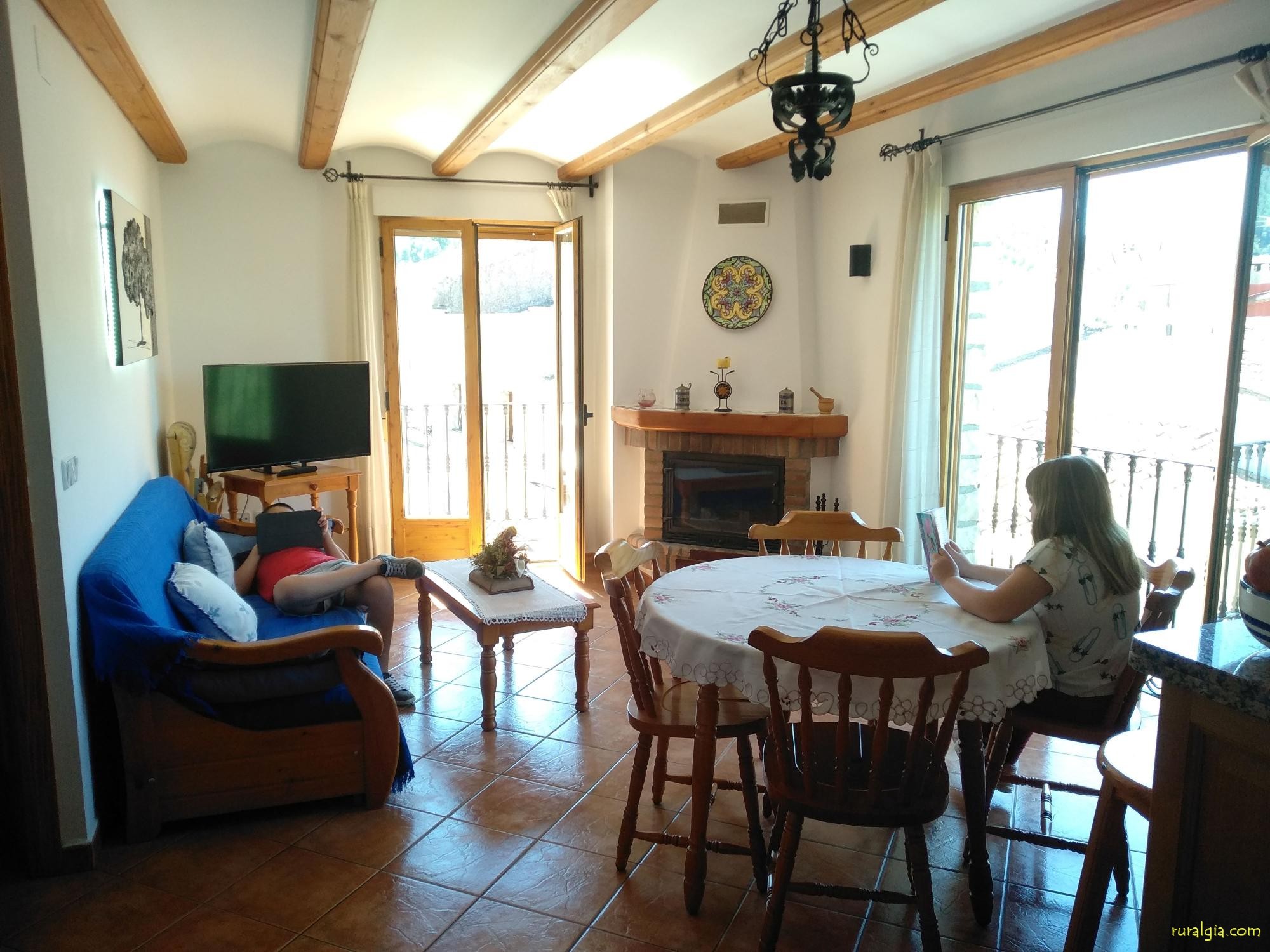 Casa rural de reciente construcción compuesta por 4 apartamentos de 2 habitaciones dobles, comedor con chimenea y sofá cama, cocina americana totalmente equipada y baño completo y en planta baja, salón para grandes grupos o estudio para contratar a 2 personas.