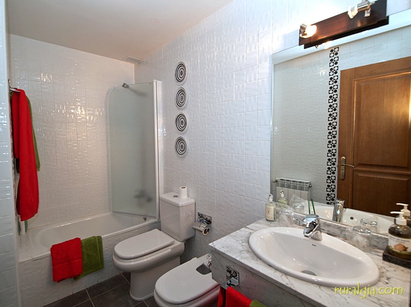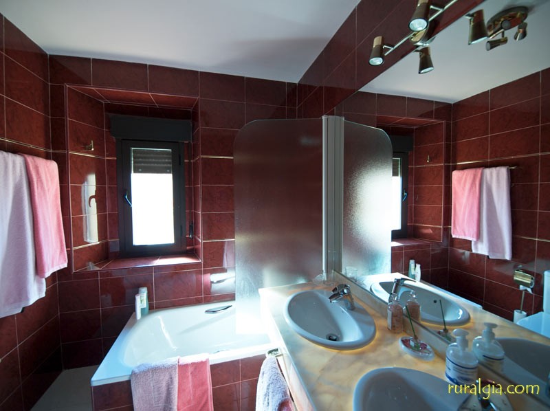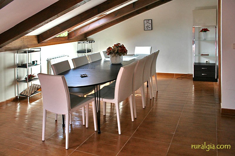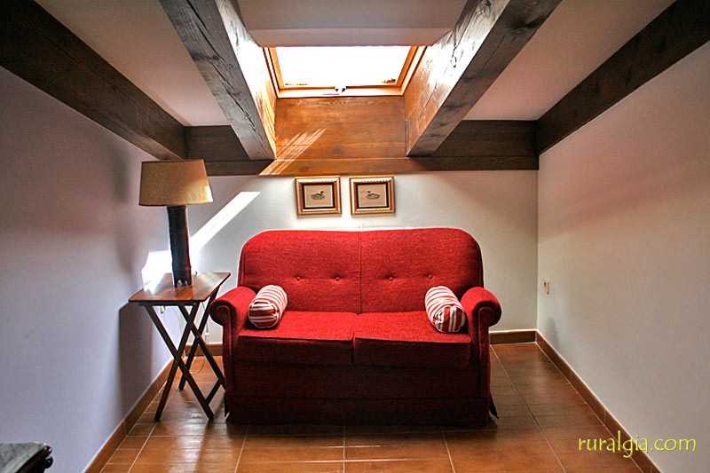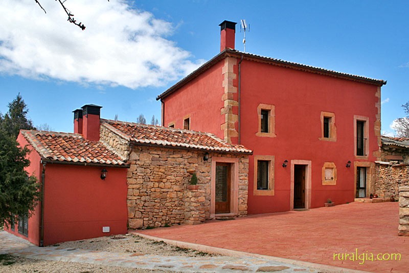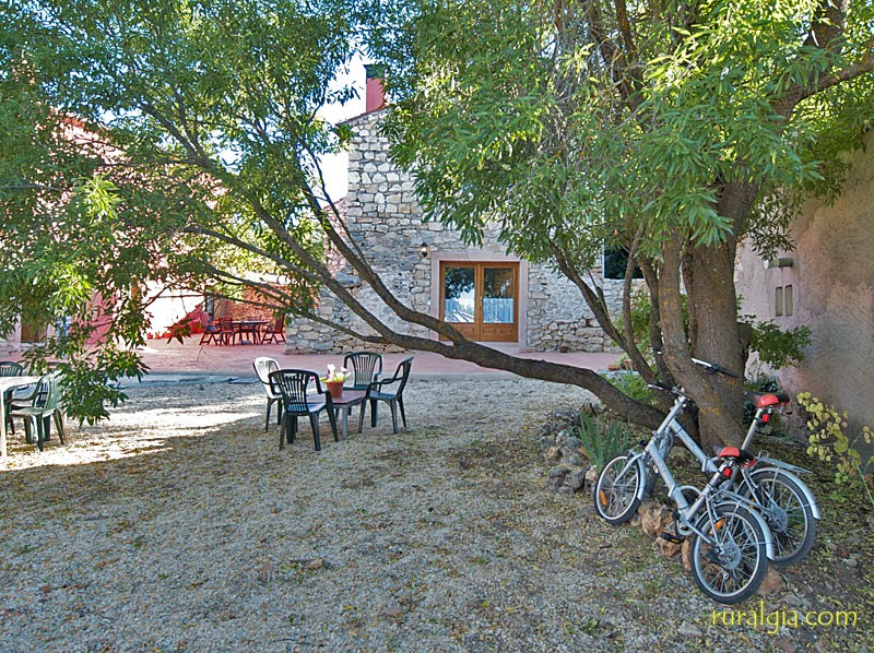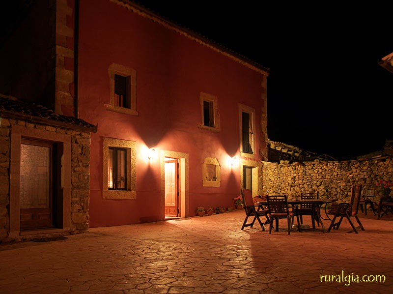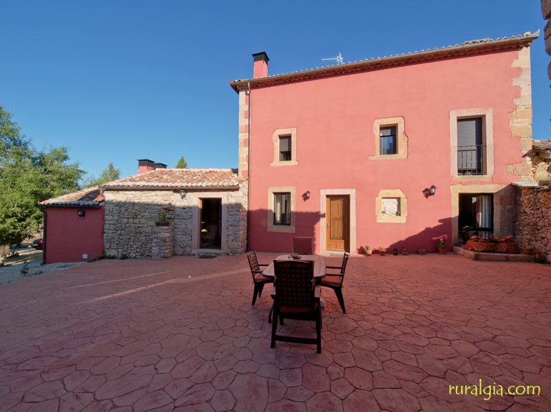 Exterior de la casaTengo una preciosa arboleda al frente con un camino que conduce a la iglesia románica de San Esteban del siglo XIII y en cuyo interior nos encontramos una magnífica pila bautismal de piedra en una sola pieza y desde la cual se divisa un amplio panorama de vistas, dado que estamos a unos 1.000 metros de altitud. También tenemos en el pueblo un frontón para todos a los que os guste la pelota.