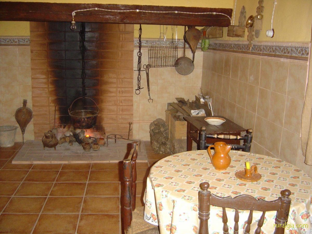 inquilinos al calor de la lumbre, artesonado de madera, cocina rústica con