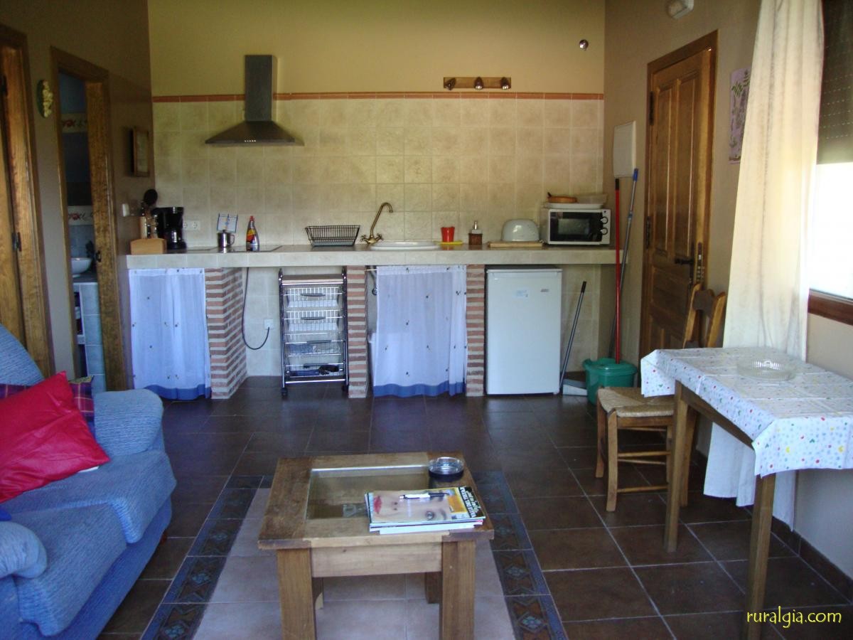 la Sayuela I Y II son dos casas rurales de alquiler completo para dos personas cada una, tienen salon con cocina totalmente equipada con todo el mobiliario necesario mesa, sillas, sofa, TV y DVD juegos de mesa, etc, cocina con nevera, tostador, cafetera, microondas, menaje, etc. baño con ducha sin barreras arquitectonicas, secador de pelo, toallas, espejo aumento, gel y champu, etc, y habitacion con cama de 1,50 colchones ecologicos con latex, armario con perchas, cortinas, lamparas, caja fuerte, alfombras, etc.