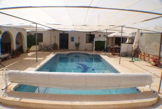 Está situado en una finca grande con 2 casas más. Hay una piscina y amplios jardines y una bar privada para la gente que se queda dentro del finca. La casa esta situada. en el campo entre las localidades de Las Palas y sólo 15 minutos en coche de 2 campos de golf y menos de media hora de las playas d Puerto de Mazarron y la ciudad de Cartagena.