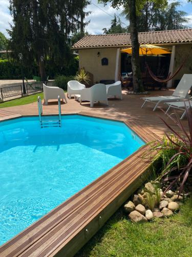 Le Loft es un alojamiento con piscina de temporada al aire libre y terraza que está en Port-Sainte-Foy-et-Ponchapt, a 25 km de Estación de tren de Bergerac, a 12 km de Campo de golf Château des Vigiers y a 34 km de Cueva Célestine. Esta casa o chalet tiene piscina privada, jardín, zona de barbacoa, wifi gratis y parking privado gratis. Esta casa o chalet con aire acondicionado consta de 2 dormitorios, una sala de estar, una cocina totalmente equipada con nevera y cafetera, y 1 baño con ducha y artículos de aseo gratuitos. Hay toallas y ropa de cama en la casa o chalet. Château Les Merles Golf está a 38 km del alojamiento, y Lande Golf está a 43 km. El aeropuerto (Aeropuerto de Bergerac Dordogne Périgord) está a 25 km.