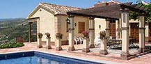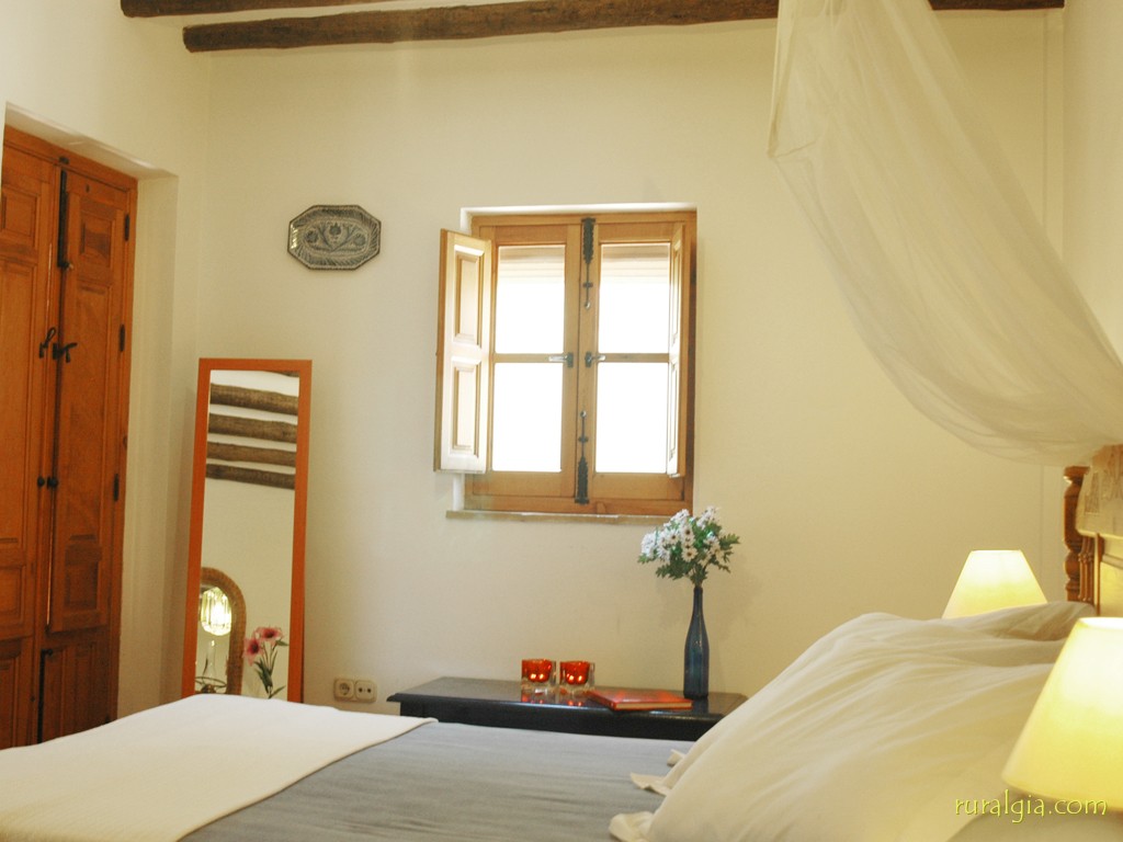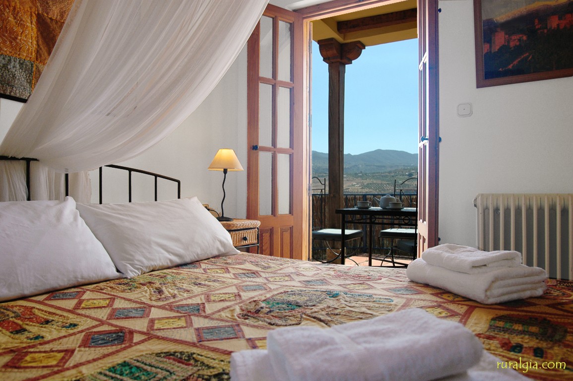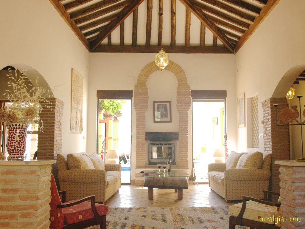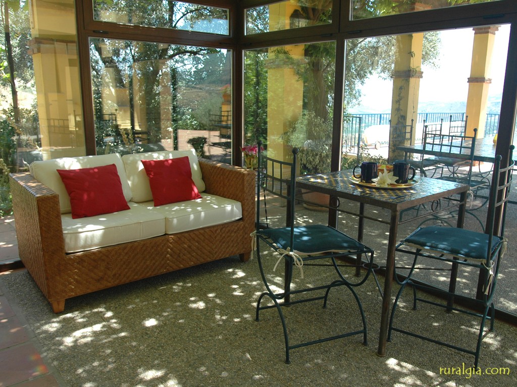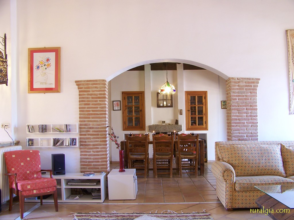 Tiene cabida para ocho personas (tres dormitorios con cama de matrimonio y otro dormitorio doble), y dispone de calefacción central. Es una obra nueva. El salón dispone de chimenea abierta y divide la casa en dos partes; a un lado queda la cocina/comedor y trastero, y al otro lado quedan los dormitorios y tres cuartos de baño. Desde la cocina podemos acceder también al exterior a través de una sala acristalada, perfecta para disfrutar de las vistas en cualquier época del año. Todos los dormitorios están en el mismo piso; no hay escaleras. La casa está decorada con muy buen gusto, y la terraza con pérgola, situada junto a la piscina, tiene una espectacular mesa de azulejos moriscos y sillas a juego, ofreciendo las mejores vistas del Valle de Lecrín. A pocos metros se encuentra la piscina y una barbacoa de obra. La piscina se puede vallar en el caso de que vengan con niños pequeños. La casa dispone de su propio suministro de agua y genera su propia electricidad. Por este motivo, existen algunas restricciones lógicas en la utilización de electrodomésticos.