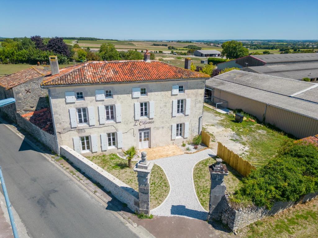 L'Odissée está en Mazeray, a 24 km de Estación de tren de Saintes y a 24 km de Abbaye aux Dames. Ofrece alojamiento con aire acondicionado y acceso a un jardín con terraza. Todas las unidades tienen baño privado totalmente equipado con ducha y artículos de aseo gratuitos. En la casa rural se puede usar la barbacoa. Saint Pierre Cathedral está a 25 km del alojamiento, y Roche Courbon Castle está a 22 km. El aeropuerto (Aeropuerto de La Rochelle - Île de Ré) está a 71 km.