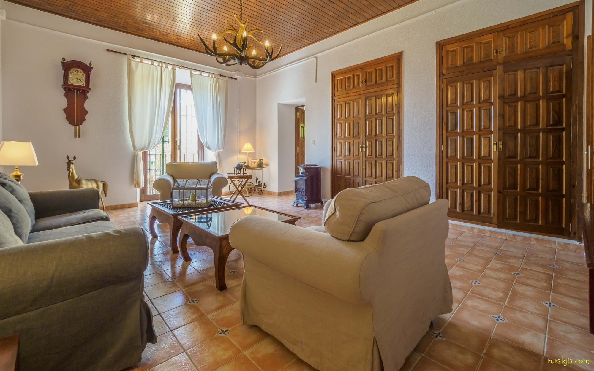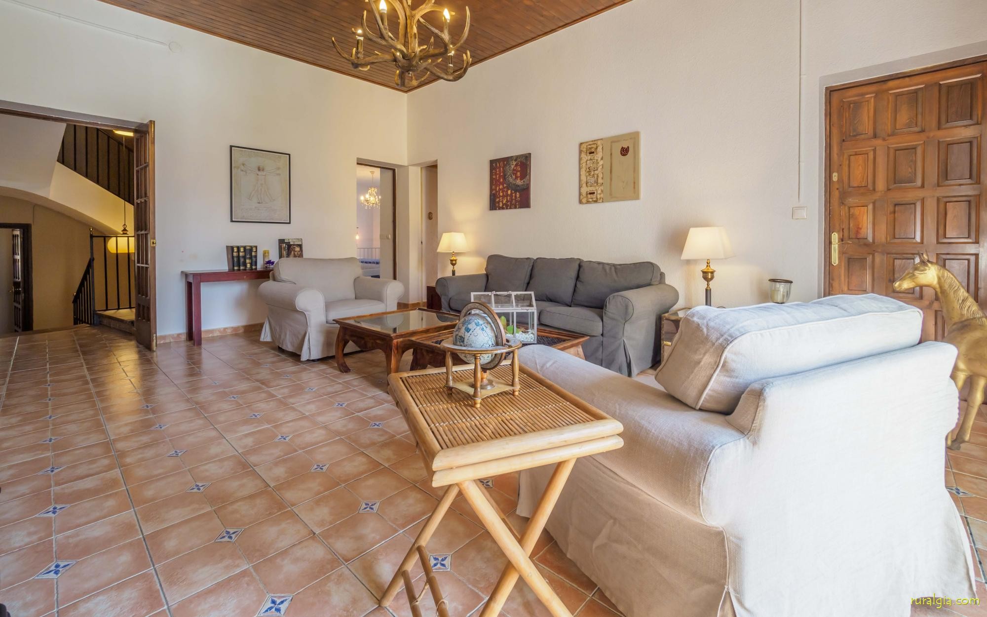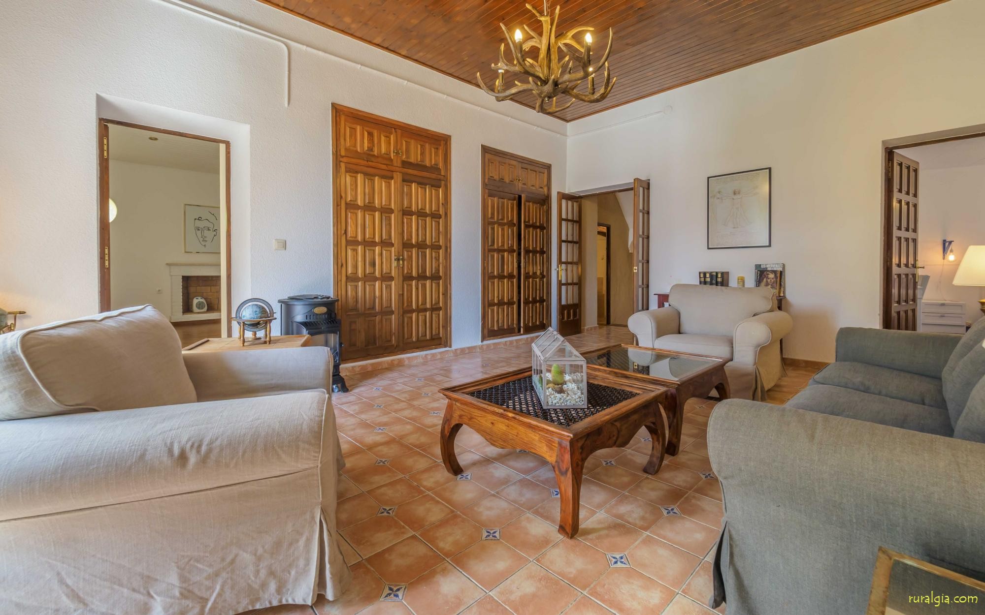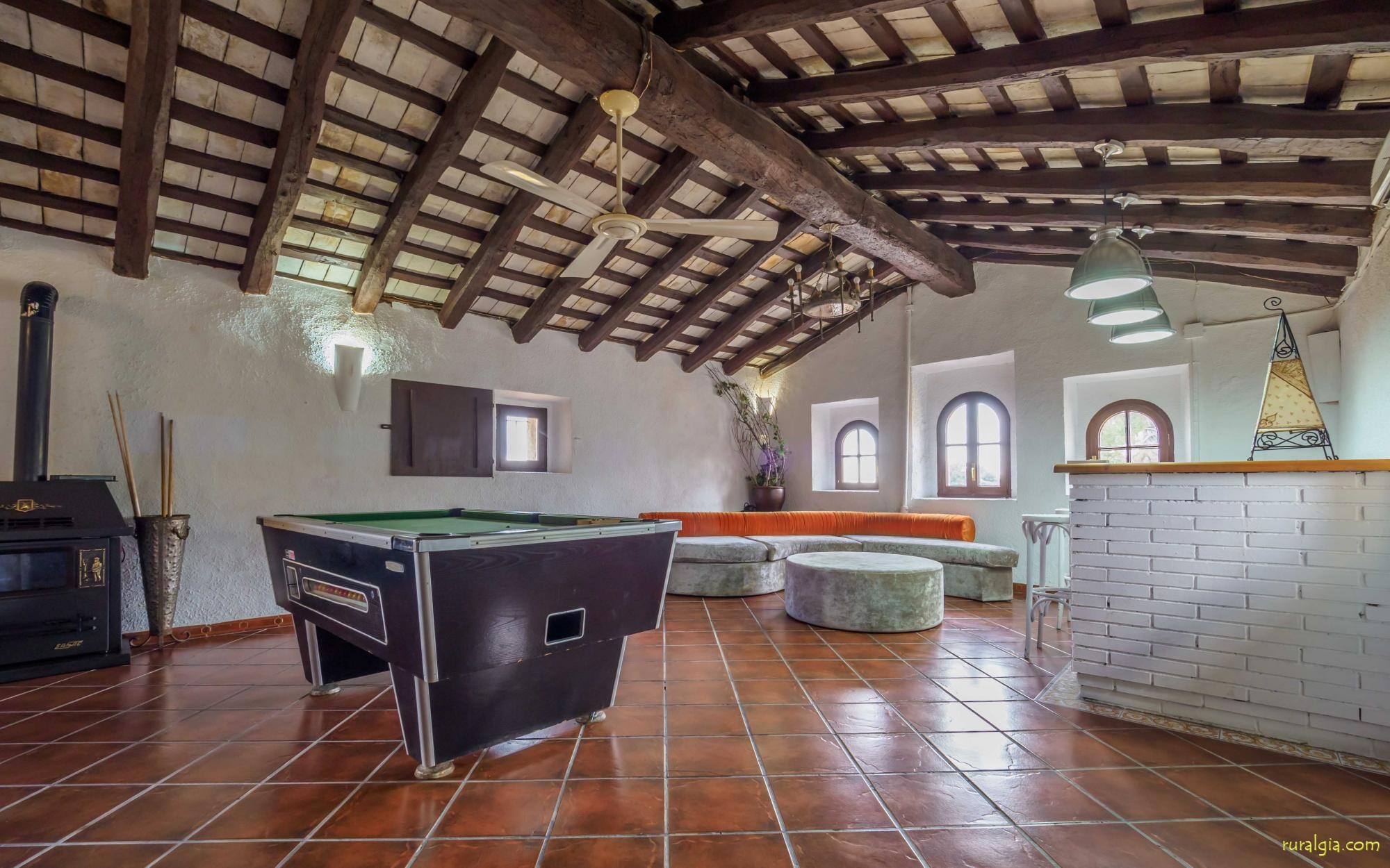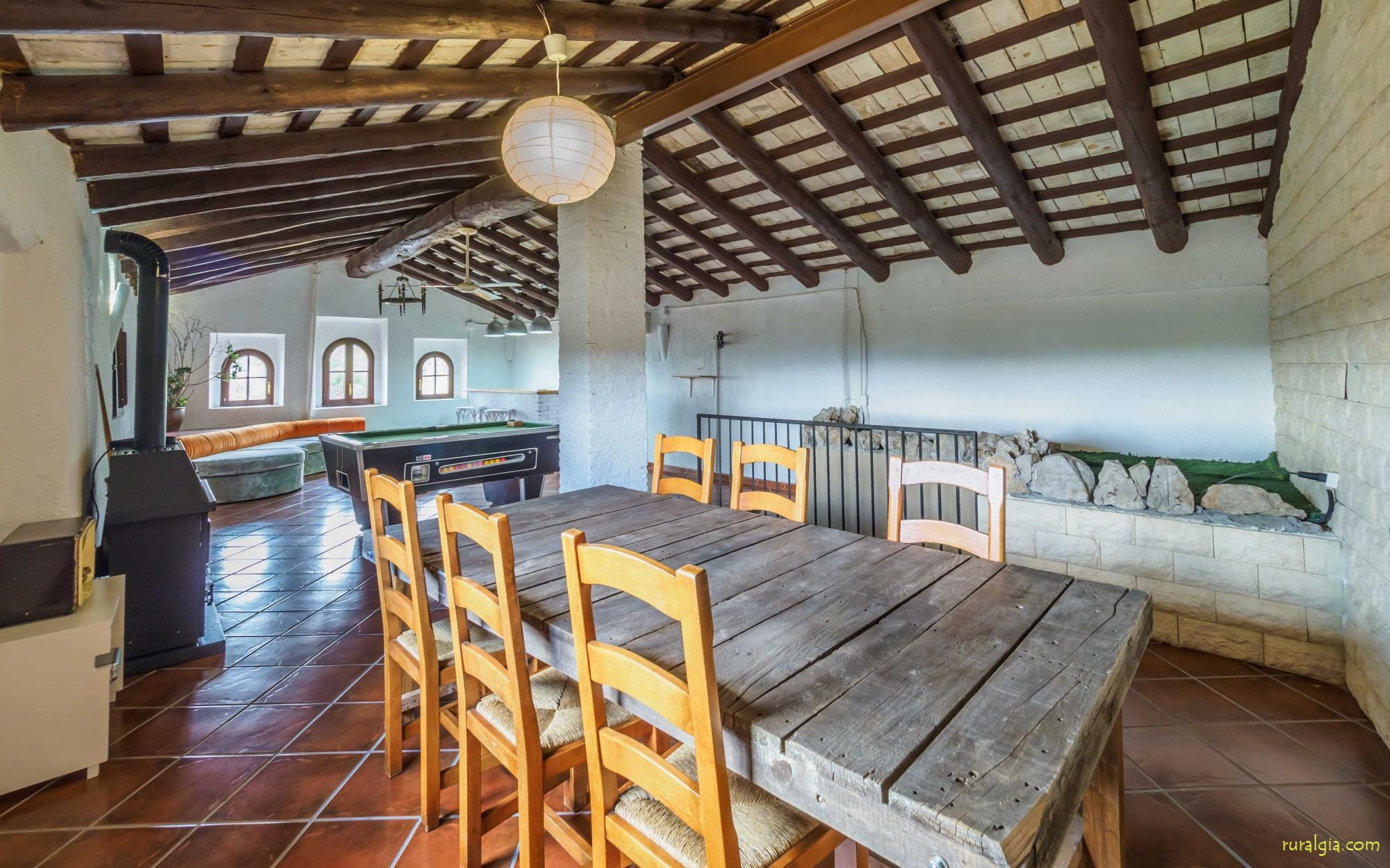 Esta casa tiene una superficie útil de 980m2 y 5.400m2 de exterior. Las estancias están distribuidas en 4 niveles: Dispone de cocina completa con mesa desayuno, un comedor principal independiente, salón con chimenea original de la casa, salón de lectura y buhardilla para uso recreativo que cuenta con un billar, una diana y juegos de mesa.