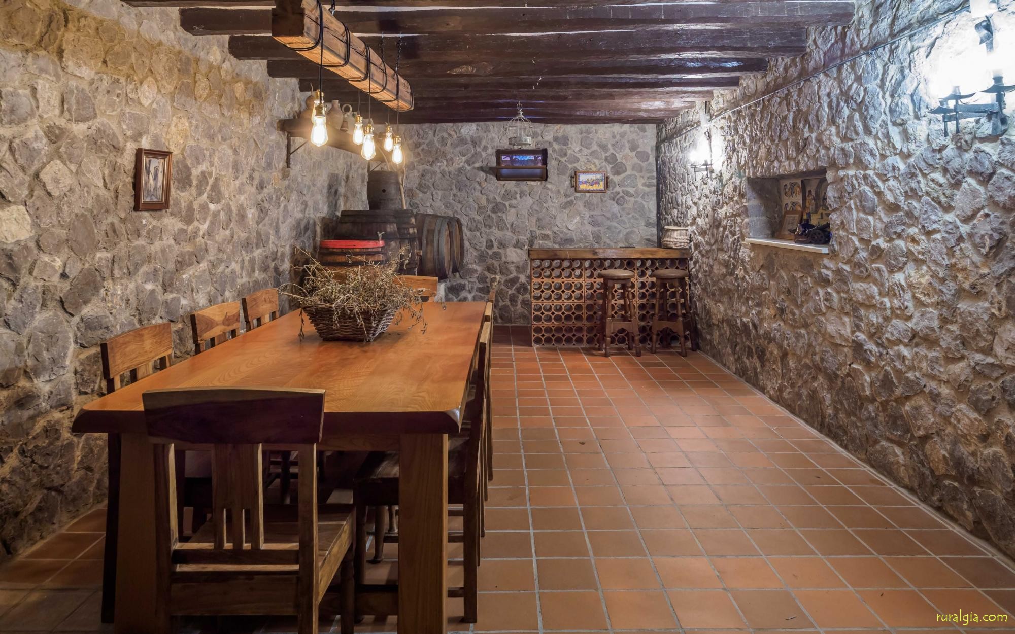 En la planta baja, encontramos la bodega con una sala de degustaciones ambientada de forma tradicional con una sala de envejecimiento del vino.
