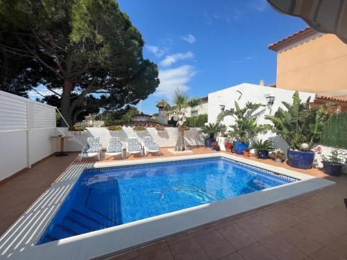 Boasting air-conditioned accommodation with a private pool, garden view and a balcony, MEDDAYS VILLA PARIS is situated in Miami Platja. This villa features a private beach area as well as barbecue facilities. This villa has 4 bedrooms, a kitchen with a fridge and an oven, a flat-screen TV, a seating area and 2 bathrooms fitted with a shower. For added convenience, the property can provide towels and bed linen for an extra charge. Guests can enjoy the indoor pool and garden at the villa. Cala Misteri is 2.9 km from MEDDAYS VILLA PARIS, while PortAventura is 26 km from the property. The nearest airport is Reus Airport, 29 km from the accommodation.