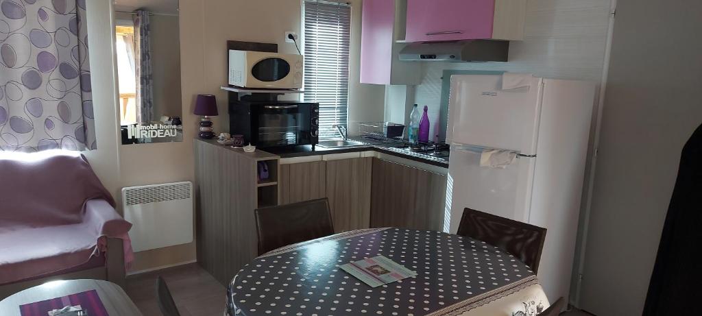 Mobile home está en Meschers-sur-Gironde y dispone de wifi gratis, piscina de temporada al aire libre, jardín y terraza. El alojamiento está equipado con TV de pantalla plana y baño privado con ducha y secador de pelo. La zona de cocina tiene nevera, horno y microondas. También hay fogones y tostadora, además de cafetera y hervidor. Conche des Cadets está a 1,8 km del alojamiento, y Estación de tren de Saintes está a 43 km. El aeropuerto (Aeropuerto de La Rochelle - Île de Ré) está a 90 km.