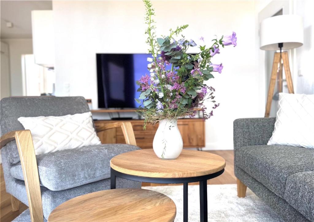 Heimathafen Fehmarn ? Exklusive Ferienwohnung mit Sauna und Loggia se encuentra en Fehmarn, a solo 4 min a pie de Playa de Marienleuchte, y ofrece alojamiento con vistas al mar, wifi gratis y parking privado gratis. Este apartamento ofrece alojamiento con balcón. El apartamento tiene 2 dormitorios, una cocina con nevera y lavavajillas, y 1 baño con ducha, secador de pelo y lavadora. Se ofrece TV. El apartamento ofrece sauna. Puente de Fehmarnsund está a 15 km del alojamiento, y Reserva de aves acuáticas de Wallnau está a 22 km. El aeropuerto (Aeropuerto de Lübeck) está a 101 km.