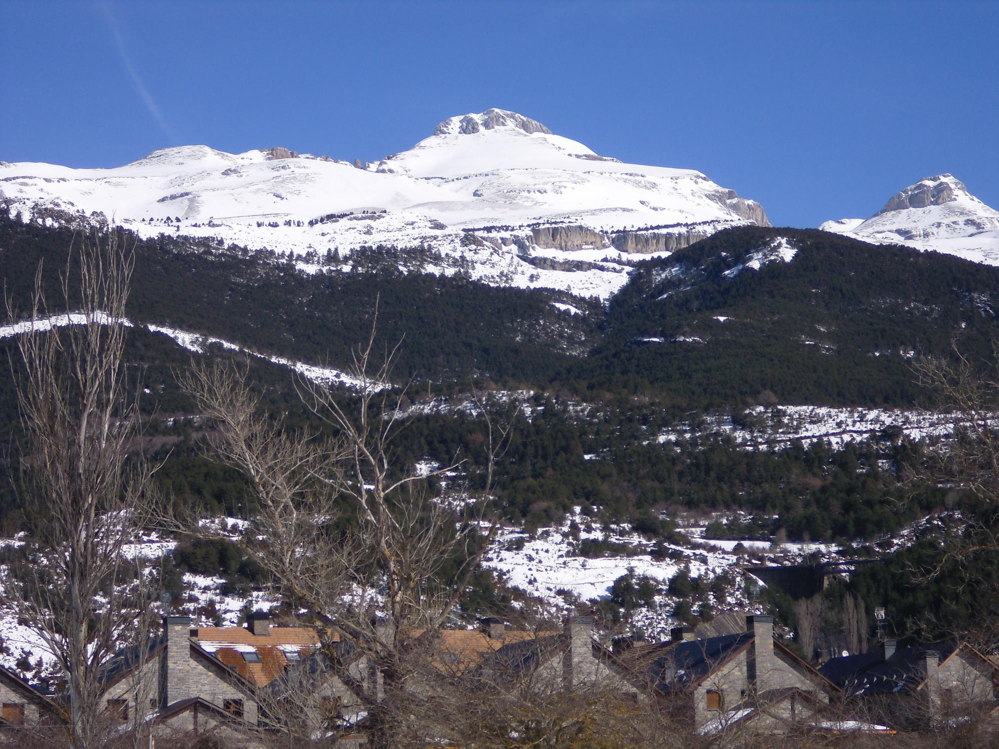 del río Aragón y a los pies de Collarada (2.886 metros), la cima más
