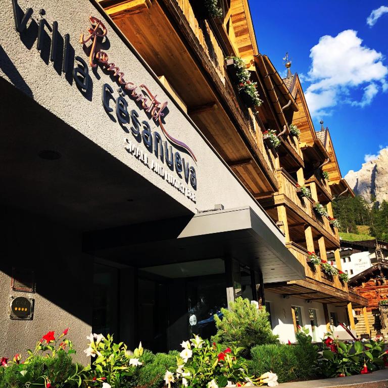 El Romantik Villa Cesanueva está situado en Selva di Val Gardena, en los Dolomitas, junto a los remontes Ciampinoi, que conectan con la zona de esquí de Sellaronda. Ofrece WiFi gratuita, aparcamiento privado gratuito, jardín y restaurante. Las habitaciones disponen de vistas a las montañas, baño privado, TV de pantalla plana, armario y escritorio. Algunas incluyen bañera de hidromasaje o balcón. El desayuno buffet incluye platos dulces y salados y pasteles caseros. El establecimiento está bien situado para practicar ciclismo y senderismo. El Villa Cesanueva se halla a menos de 15 minutos en coche de Ortisei y a 20 km de Corvara in Badia.