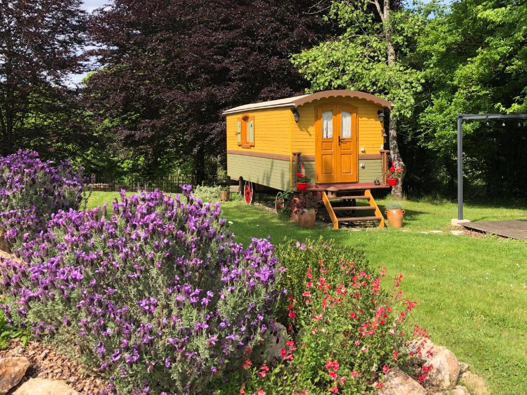 Roulotte La Chouette des Granges, que tiene vistas al jardín, ofrece alojamiento con jardín, terraza y zona de barbacoa a unos 21 km de Rochechouart - Nature Park. La casa rural, que cuenta con parking privado gratis, está en una zona en la que se pueden practicar actividades como senderismo y dardos. La casa rural tiene 1 dormitorio, una zona de cocina con nevera y fogones, y 1 baño con ducha y artículos de aseo gratuitos. Hay toallas y ropa de cama en la casa rural. En la casa rural se puede disfrutar de un desayuno continental. Montbrun Castle está a 27 km del alojamiento. El aeropuerto (Aeropuerto de Limoges ? Bellegarde) está a 51 km.