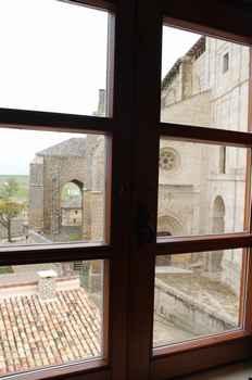situada en la plaza del pueblo, junto a la iglesia de San hipólito, SXIV, y frente al hospital de peregrinos del SXII construido bajo la protección de Alfonso x el sabio