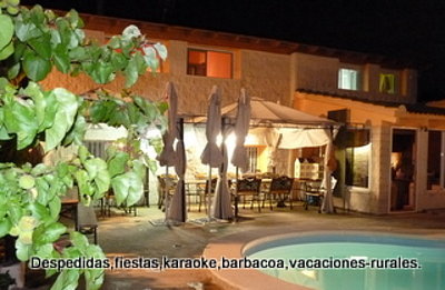 H finca para celebraciones de bodas, despedidas de solteros, fiestas privadas y todo tipo de eventos. La finca dispone de piscina privada, gran salón rústico barbacoa de leña , jardin, terrazas, ping-pong y salon con chimenea. La casa se alquila de forma completa e independiente (no se comparte con otros grupos). Dispone de un enorme salón-comedor , cocina totalmente equipada con todos los electrodomésticos y menaje de hogar, 5 habitaciones,una con baño privado y dos aseos mas.