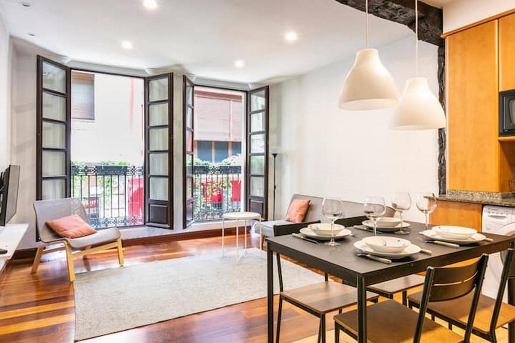 Siete Calles / Bilbao ART es un alojamiento bien situado en el centro de Bilbao que ofrece patio. Catedral de Santiago y Teatro Arriaga están a 2 min a pie y a 500 metros del apartamento, y hay wifi gratis. El apartamento cuenta con balcón y vistas a la ciudad, y tiene 2 dormitorios, una sala de estar, TV de pantalla plana, una cocina equipada con nevera y horno, y 1 baño con ducha. Hay toallas y ropa de cama en el apartamento. Cerca del alojamiento hay puntos de interés como Estación de tren Abando, Puente de Calatrava y Funicular de Artxanda. El aeropuerto (Aeropuerto de Bilbao) está a 10 km.