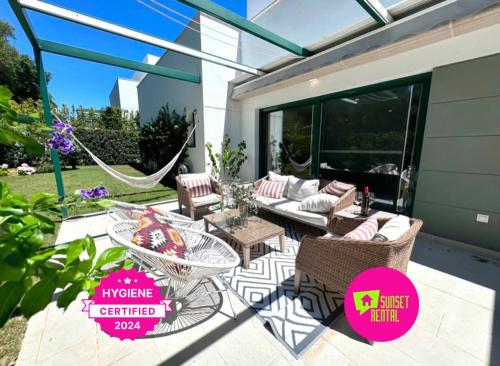 Sotogrande exclusive 4 bed apartment with pool está a 15 km de Golf La Duquesa y ofrece centro de fitness y jardín, así como alojamiento con aire acondicionado, balcón y wifi gratis. El apartamento ofrece terraza, vistas al jardín, zona de estar, TV de pantalla plana, cocina totalmente equipada con nevera y lavavajillas, y baño privado con ducha y secador de pelo. También hay horno y cafetera. Sotogrande exclusive 4 bed apartment with pool tiene piscina al aire libre. San Roque Golf Club está a 8,6 km del alojamiento, y Estepona Golf está a 26 km.
